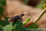 또한 수컷의 더듬이는 길어서 앞가슴등판의 뒷 모서리를 지나지만
