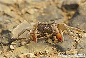 조상대 부근에 사는 붉은발사각게는 갈대 포기 사이에 조금 간격이 넓은 곳에