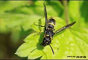 몸길이 12mm이다. 머리와 가슴은 검은색으로 약한 광택이 있다. 가슴의 가운뎃부분과 배의 끝부분은 황색을 띤다.