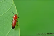 체표 측면에 녹색 인편이 피복 되어 있으며, 더듬이 곤봉마디는 가늘고 길다.