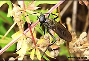 빨간뒤영벌파리매 라고도 한다. 몸길이 23mm이다. 머리·가슴은 검은색이며, 부분적으로 황색의 긴털이 나 있다. 배부분의 표면은 검은색이고 황색의 긴털로 촘촘히 덮여 있다. 날개맥은 진한 갈색이며, 날개는 연한 갈색을 띠고 있다. 어른벌레는 봄부터 활동을 시작하며 강한 구기로 다른 곤충을 잡아먹는 포식성 곤충이다. 파리매과에 속하는 곤충 중 대형이고 강한 비행력을 가지고 있다. 산벌레들이 날아들면 재빠르게 잡아먹는다. 한국·일본 등지에 분포한다.