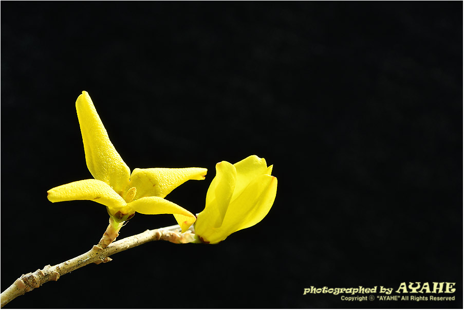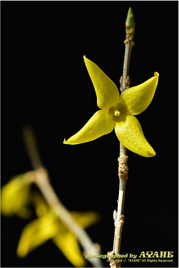우리 동네 가까운 뒷산 중턱 텃밭 근처에 개나리가 서너개가 피기 시작 했어요.