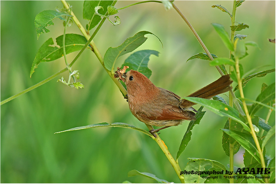 몸 길이 13㎝ 정도 뱁새가 오월의 새끼를 위한 먹이를 부지런히 물어 나르네요.