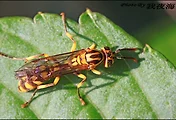 몸길이는 20 mm 내외이다. 암컷의 몸은 흑색이고, 머리 부분은 담황색의 긴 털이 밀생한다.