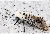 앞날개에는 흑색점의 뚜렷한 점무늬들이 산재해 있다. 성충수컷은 앞날개 외연이 직선상이고 날개 끝이 뾰족하나 암컷은 둥그스름하다.