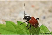 몸은 흑색이나 앞가슴등판과 딱지날개, 각 다리의 종아리마디는 적갈색이다.