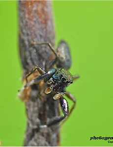 거미목127 줄연두게거미 줄연두게거미 학 명 : Oxytate striatipes L. Koch 1878 거미목 게거미과 크기 1.2cm 정도. 등에 연한 연두색 줄이 있고 배에는 검은털이 쌍으로 나있다. 거미는 다리가 4쌍(8개)이며 작은 더듬이 다리 한쌍이 더 있습니다. 암컷은 더듬이다리의 끝이 얇고 뾰족한 반면 수컷은 더듬이다리 끝이 방망이처럼 뭉툭하다. 이넘은 줄연두게거미 더듬이다리를 보니 암컷 같습니다. 2020. 10. 23. 대륙게거미 대륙게거미 학 명 : Xysticus ephippiatus Simon 1880 분 류 : 거미목 게거미과 몸길이 6~12mm. 5~9월에 볼 수 있으며 거미줄을 치지 않고 나뭇잎이나 풀잎 또는 꽃에 숨어 있다가 다가 오는 먹이를 잡아 먹습니다. 대륙게거미 먹이로 검털파리를 사냥 했네요. 2020. 9. 28. 무당거미 무당거미 학명 : Nephila clavata L, Koch, 1878 분류 : 거미목(Araneae) 무당거미과(Nephilidae) 몸길이는 암컷 20.0~30.0mm, 수컷 6.0~10.0mm. 등딱지는 갈색 바탕에 짧은 은백색 털이 덮여 있고, 가슴판은 흑갈색으로 앞, 뒤쪽 가운데에 노란색 무늬가 있다. 다리는 흑갈색으로 노란색 고리 무늬가 있다. 배는 .. 2019. 10. 9. 가시가 6개인 가시거미 가시거미 학 명 : Gasteracantha kuhli C. L. Koch, 1837 분류 : 거미목(Araneae) 왕거미과(Araneidae) 몸길이는 암컷 6.0~8.0mm, 수컷 3.0~4.0mm이다. 등딱지는 흑갈색으로 불룩하고, 뒤쪽은 배로 짓눌려 있다. 다리는 황갈색이나 넓적다리마디는 암갈색이다. 배는 단단한 키틴판(딱딱한 표피나 껍데기의 골격).. 2019. 9. 6. 청띠깡충거미 수컷 청띠깡충거미 학 명 : Siler cupreus Simon, 1889 분류 : 거미목(Araneae) 깡충거미과(Salticidae) 크기 수컷 5~6mm, 암컷 5~7mm. 배갑은 암갈색이며, 눈 부분이 검고, 앞쪽에 청록색의 가는털이 덮여 있다. 다리는 첫째다리가 강하고 크며 흑갈색을 띠며, 넓적다리와 종아리 다리마디에 털 다발과 2~3쌍의 가.. 2019. 8. 14. 검은날개무늬깡충거미 수컷 입니다. 검은날개무늬깡충거미 학명 : Telamonia vlijmi Proszynski 1984 분류 : 거미목(Araneae) 깡충거미과(Salticidae) 새실젖거미아목(Araneomorphae) 크기 9~11mm. 배갑은 황갈색으로 눈쪽 중앙에 1개, 뒷눈줄의 뒤쪽에 1쌍의 팔자모양 암갈색 무늬가 있고, 다리는 황갈색, 앞다리의 발바닥마디와 발끝마디의 끝쪽.. 2019. 8. 12. 황닷거미 먹이 사냥 황닷거미 학명 : Dolomedes sulfureus L. Koch, 1878 분류 : 거미목(Araneae) 닷거미과(Pisauridae) 몸길이 암컷 20.~28mm, 수컷 14~20mm. 등딱지는 황갈색으로 불룩하며 개체에 따라 가운데를 지나는 회갈색 띠무늬가 있다. 다리는 황갈색으로 크고 길며 고리 무늬는 없으나 가시털이 많이 나 있다. 배는 갸름.. 2019. 5. 9. 홀아비깡충거미 홀아비깡충거미 절지동물문(Arthropoda) 거미강(Archnida) 거미목(Araneae) 깡충거미과(Salticidae) 학 명 : Sitticus avocator (O, P, -Cambridge, 1855) 몸길이 암컷 5~6mm, 수컷 3.5~4.6mm. 배갑은 적갈색이며 노란색 털이 눈 부위와 배갑의 양 옆면과 가슴홈 뒤쪽에 빽빽이 나 있다. 가슴판은 진한 갈색 바탕에 가는 .. 2016. 6. 29. 이전 1 2 3 4 ··· 16 다음