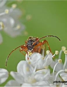 Coleoptera127 풍이 풍이 학 명 : Pseudotorynorrhina japonica (Hope, 1841) 분 류 : 딱정벌레목(Coleoptera) 꽃무지과(Cetoniidae) 몸은 광택이 강한 녹갈색이나 구리빛 내지 붉은 빛을 띠는데 녹색, 남색, 흑남색, 흑자색, 등의 변이도 있다. 수컷의 전경절은 가늘고 외치가 없으나 암컷은 굵고 강하며 외치도 1개가 뚜렸하다. 후경절 안쪽의 털은 회갈색이며. 주융돌기의 끈은 은행 모양이고, 딱지날개의 끝은 뾰족하게 돌출 하였다. 수컷의 복부복판은 길이로 파였다. 2020. 7. 31. 노랑가슴청색잎벌레 노랑가슴청색잎벌레 학 명 : Cneorane elegans Baly, 1874 분 류 : 딱정벌레목(Coleoptera) 잎벌레과(Chrysomelidae) 몸길이 7.0~7.2mm. 배판은 흑색, 중간가슴배판은 적갈색이고 더듬이는 흑색이며 기부 수개절은 적갈색이다. 다리는 적갈색이며, 발마디, 뒷다리, 허벅지는 녹청색이다. 앞날개는 녹청색이며, 소순판은 흑색, 앞가슴등판, 머리는 적갈색이다. -국가생물종지식정보시스템- 2020. 7. 27. 네눈박이송장벌레는 개체변화가 심하다. 네눈박이송장벌레 학명 : Dendroxena sexcarinata (Motschulsky, 1861) 분류 ; 딱정벌레목(Coleoptera) 송장벌레과(Silphidae) 몸길이는 10~15mm이며, 몸색갈은 등황색이다. 앞가슴등판 가운데 흑색무늬가 있으며 딱지날개에도 다섯개의 흑색점무늬가 있다. 개체변이가 심하다. 2020. 7. 2. 검정명주딱정벌레 검정명주딱정벌레 학 명 : Calosoma maximowiczi (Morawitz) 분류 : 딱정벌레목(Coleoptera) 딱정벌레과(Carabidae) 몸길이는 22~31mm 이며, 몸색갈은 녹색광택이나는 흑색이다. 앞머리는 오목하고 주름무늬가 있다. 딱지날개에는 비늘 모양으로 된 너비가 넓은 15줄의 굴곡진 홈이 있다. 성충은 흙속에서 활동하고 이른 봄부터 초여름에 가장 많이 활동 한다. -국가생물종지식정보시스템- 2020. 6. 14. 홀쭉하늘소나 홍줄하늘소는 같은 이름 입니다. 홀쭉하늘소 학명 : Leptoxenus ibidiiformis Bates, 1877 분류 : 딱정벌레목(Coleoptera) 하늘소과(Cerambycidae) 하늘소아과(Cerambycinae) 청줄하늘소족(Xystrocerini) 몸길이 11~15mm 정도. 수염이 몸길이 보다 더 길어요.. ' ' ' ' ' ' ' ' ' 2020. 5. 17. 섬국수꽃이 필때면 나타나는 넉점각시하늘소 넉점각시하늘소 딱정벌레목(Coleoptera) 하늘소과(Cerambycidae) 꽃하늘소아과(Lepturinae) 소나무하늘소족(Rhagiini) 학 명 : Pidonia puziloi (Solsky, 1873) 몸길이 4~6mm. 머리와 가슴은 흑색 더듬이와 배, 다리 부분이 양쪽날개와 합쳐지는 가운데의 줄은 황갈색이다. 딱지날개와 각 다리의 넓적다리마디의 .. 2020. 5. 13. 좀남색잎벌레(암컷) 식사중 좀남색잎벌레 학명 : Gastrophysa atrocyanea Motschulsky, 1860 분류 : 딱정벌레목(Coleoptera) 잎벌레과(Chrysomelidae) 몸길이 5.2~5.8mm. 몸전체 색깔이 흑청색이며, 등판의 강한 점각, 앞날개 불규칙한 점각이 있다. 좀남색잎벌레 암컷 식사중이며 곧 알을 놓을 것 같네요. ' ' ' ' ' ' ' ' ' ' ' ' 2020. 3. 31. 아직 동면을 하지 않은 박하잎벌레 박하잎벌레 학 명 : Chrysolina exanthematica (Wiedemann, 1821) 분류 : 딱정벌레목(Coleoptera) 잎벌레과(Chrysomelidae) 몸길이는 7.5~9.0mm, 몸색깔은 흑록색으로 광택이있다. 등판은 동흑색. 앞날개 옆에 강한 융기. 표면에 큰고 작은 돌기가 있다. 성충은 4~5월에 나타나 9월까지 활동한다. 적갈색의 가늘고 .. 2019. 11. 4. 이전 1 2 3 4 5 ··· 16 다음