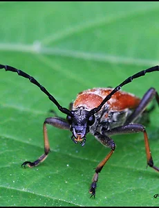 Corymbia rubra (Linne)2 붉은산꽃하늘소 붉은산꽃하늘소 딱정벌레목 하늘소과 학 명 : Corymbia rubra (Linne) 몸길이는 12~22mm이다. 몸은 흑색이나 앞가슴등판과 딱지날개, 각 다리의 종아리마디는 적갈색이다. 온몸에 황색의 매우 짧은 털이 있고 더듬이는 몸 보다 짧다. 딱지날개는 뒤쪽이 약간 좁고 비스듬히 잘려서 바깥쪽이 날카롭다. -국가생.. 2010. 8. 2. 붉은산꽃하늘소 붉은산꽃하늘소 딱정벌레목 하늘소과 학 명 : Corymbia rubra (Linne) 몸길이는 12~22mm이다. 몸은 흑색이나 앞가슴등판과 딱지날개, 각 다리의 종아리마디는 적갈색이다. 온몸에 황색의 매우 짧은 털이 있고 더듬이는 몸 보다 짧다. 딱지날개는 뒤쪽이 약간 좁고 비스듬히 잘려서 바깥쪽이 날카롭다. -국가생.. 2009. 8. 18. 이전 1 다음