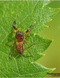 Salticidae11 청띠깡충거미 수컷 청띠깡충거미 학 명 : Siler cupreus Simon, 1889 분류 : 거미목(Araneae) 깡충거미과(Salticidae) 크기 수컷 5~6mm, 암컷 5~7mm. 배갑은 암갈색이며, 눈 부분이 검고, 앞쪽에 청록색의 가는털이 덮여 있다. 다리는 첫째다리가 강하고 크며 흑갈색을 띠며, 넓적다리와 종아리 다리마디에 털 다발과 2~3쌍의 가.. 2019. 8. 14. 검은날개무늬깡충거미 수컷 입니다. 검은날개무늬깡충거미 학명 : Telamonia vlijmi Proszynski 1984 분류 : 거미목(Araneae) 깡충거미과(Salticidae) 새실젖거미아목(Araneomorphae) 크기 9~11mm. 배갑은 황갈색으로 눈쪽 중앙에 1개, 뒷눈줄의 뒤쪽에 1쌍의 팔자모양 암갈색 무늬가 있고, 다리는 황갈색, 앞다리의 발바닥마디와 발끝마디의 끝쪽.. 2019. 8. 12. 홀아비깡충거미 홀아비깡충거미 절지동물문(Arthropoda) 거미강(Archnida) 거미목(Araneae) 깡충거미과(Salticidae) 학 명 : Sitticus avocator (O, P, -Cambridge, 1855) 몸길이 암컷 5~6mm, 수컷 3.5~4.6mm. 배갑은 적갈색이며 노란색 털이 눈 부위와 배갑의 양 옆면과 가슴홈 뒤쪽에 빽빽이 나 있다. 가슴판은 진한 갈색 바탕에 가는 .. 2016. 6. 29. 금색이 멋진 살깃깡충거미 살깃깡충거미 절지동물문(Arthropoda) 거미강(Arachnida) 거미목(Araneae) 깡충거미과(Salticidae) 학 명 : Mendoza elongata (Karsch, 1879) 몸길이 암컷 8~11mm, 수컷 6~9mm. 배갑은 달걀모양으로 흑갈색이며 전체에 흰 색털이 빽빽이 나 있다. 가슴판은 좁아 너비가 길이의 1/2이며, 갈색 바탕에 흰 색털이 나 있다.. 2016. 6. 27. 흰뺨깡충거미 흰뺨깡충거미 절지동물문(Arthropoda) 거미강(Archnida) 거미목(Araneae) 깡충거미과(Salticidae) 학 명 : Evarcha proszynskii Marusik and Logunov, 1998 몸길이 암컷 7~8mm. 수컷 5~6mm. 배갑은 머리쪽이 빛나는 흑갈색이며,흰털로 된 U자 모양의 무늬가 있다. 가슴은 암갈색이며 뒤쪽이 더 검다. 다리는 암황갈색으.. 2016. 6. 25. 4개의 붉은줄이 있어 사층깡충거미 사층깡충거미 거미강(Arachnida) 거미목(Araneae) 깡충거미과(Salticidae) 학 명 : Marpissa pulla (Karsh, 1879) 몸길이 암컷 6~7mm, 수컷 5~6mm. 배갑은 흑갈색으로 흰색털이 흩어져 있으며, 머리 뒤쪽에 U자 모양의 담색 무늬가 있고, 배갑 전반이 편평하나 뒤쪽은 급경사를 이룬다. 다리는 넓적다리마디가 .. 2016. 6. 23. 큰줄무늬깡충거미 큰줄무늬깡충거미 거미목(Araneae) 깡충거미과(Salticidae) 학 명 : Plexippoides annulipedis (Saito 1939) 등딱지는 달걀형으로 볼록하며 황갈색 바탕에 한가운데의 앞쪽과 뒤쪽에 회색무늬가 있고 옆쪽에 폭넓은 암갈색 줄무늬가 있으며 가장자리에 회색 긴털이 나 있다. 다리는 강하며 각 다리마디 기.. 2015. 10. 15. 만나서 행복한 꼬마금오깡충거미 꼬마금오깡충거미 거미목(Araneae) 깡충거미과(Salticidae) 학 명 : Bristowia heterospinosa Reimoser 1934 등딱지는 달걀형으로 활갈색 바탕에 양 옆눈에서는 뒤쪽으로 흐르는 암갈색의 물결무늬가 있다. 다리는 황갈색이며 앞다리 발바닥마디 밑면에 2쌍의 가시털이 나 있다.. 배는 달걀형이며 등면의 .. 2015. 8. 18. 이전 1 2 다음
